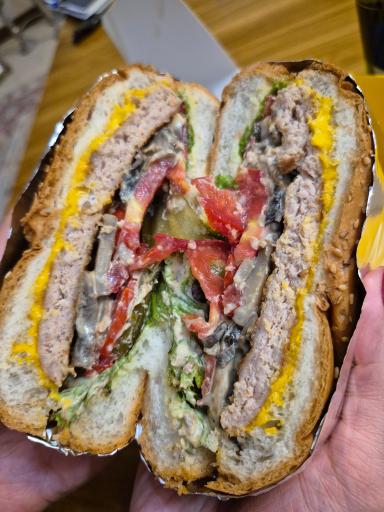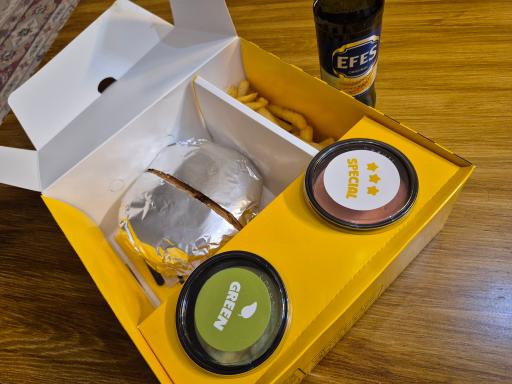 نمایش موقعیت منسیب زمینی خوب و عالی طعم برگر خیلی خاص و واوو نبود. ولی خب تازه و نرم بود کاهو خوب بود نون تازه و نرم شاید به عنوان اولین انتخاب نباید مرغ برگر میگرفتیم از اینجا. در کل از 5 بهش 3 میدم بسته بندی و سس عالی از 5 5 میدم سیب هم 5 از 5