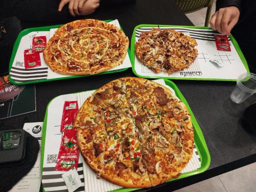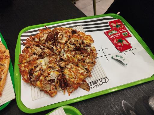 اون پیتزایی که انتظار داشتیم نبود، شعبههای دیگهی چیکن فامیلی فکر میکنم پیتزاها بهتری خورده بودیم... امریکن رست بیف، چیکن لاورز، دونر گوشت