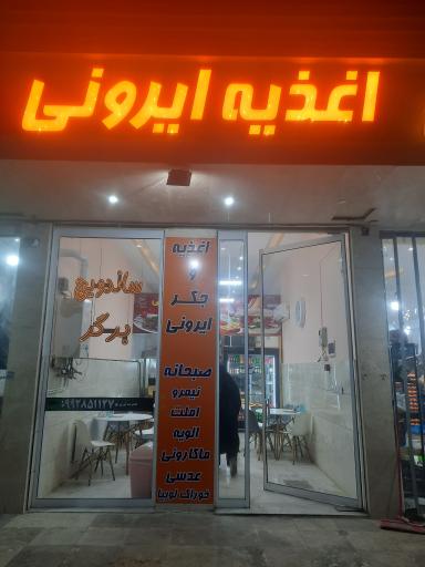 فست فود ایرونی در محله صادقیه مشهد و خیابان سجادیه 32- جهان بین 2 واقع شده است. این مکان یکی از هشت فست فود در محله صادقیه مشهد میباشد و از نظر موقعیت جغرافیایی در نزدیکی آکادمی بدنسازی اقبال، کترینگ سران، گیم نت پلاس+، سالن پیرایش کاج و سالن زیبایی پریزاد قرار گرفته است. همچنین با توجه به نظراتی که کاربران در اپلیکیشن نشان به این مکان دادهاند میتوان گفت این مکان یکی از فست فودهای خوب این منطقه میباشد.