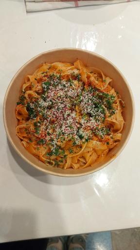 آلفردو ها و پستوهاش واقعا عالی و بینظیره 😋 قیمت پاستاها نسبت به حجم و کیفیت و مزه خیییلی مناسبه.. بیرون بر هست اما اگه میز و صندلی بیشتری میگذاشتن برای نشستن های گروهی خیییلی بهتر بود .. پاستای گیاهی هم دارن که من سبزیجاتش گرفتم واقعا عالی بود ..