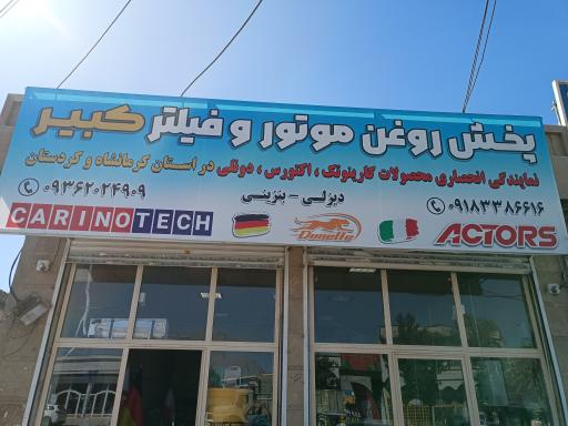 نمایش موقعیت منپخش روغن موتور و فیلتر کبیر (فروشگاه مرتبط با خودرو) در محله دیزل آباد کرمانشاه و خیابان زندان (۱۰۰) واقع شده است. این فروشگاه یکی از پانزده فروشگاه مرتبط با خودرو در محله دیزل آباد کرمانشاه میباشد و از نظر موقعیت جغرافیایی در نزدیکی پاساژ بشیری و همچنین نمایندگی بهمن موتور( رجبی کد ۱۵۱۴)، چلوکبابی و رستوران برادران، کیلومترسازی اورانوس، کافه دیزل و کبابی سلمان قرار گرفته است.