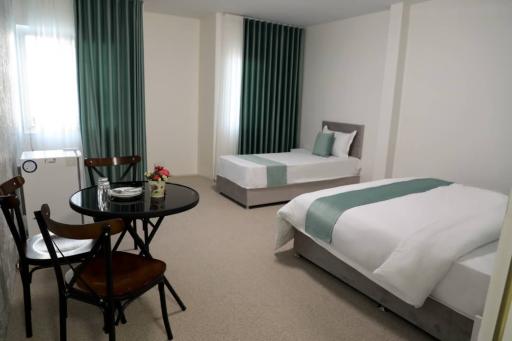 اول بگم که هتل نیست در صورتیکه نوشتن هتل سه ستاره!یه مهمان سراس یه سری عکسا هیچ ربطی به هتل ندارن اما تمیزه و گرم اما صبحانه اصلا خوب نیس و هیچی ندارن ظروف صبحانه تمیز شسته نشدن سالن غذاخوری خاصی نداره یه اتاقه که میز چیدن توش برای غذا خوردن و قیمتی که میدی واقعا زیاده اما لوکیشن خوبه و دسترسی به مترو دارین با ماشینم به همه جا دسترسی دارین نوشته بودن پارکینگ دارن ما که ندیدیم یعنی گفتن همین بغله همون بغلم چیزی نبود گفتن اگر میخواین با ماشین برین بیرون باید بزنید دم در