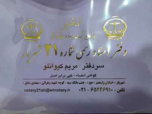 نمایش موقعیت مندفترخانه ۲۱ شهریار (دفتر اسناد رسمی) در محله معلم شهریار و خیابان شهید زهرایی واقع شده است. این دفتر یکی از شش دفتر اسناد رسمی در محله معلم شهریار میباشد و از نظر موقعیت جغرافیایی در نزدیکی مراکز مهمی مانند شهربازی ماکوان و پاساژ ولیعصر و همچنین موبایل پایتخت، رستوران سنتی بهنود، تیپاکس شعبه شهریار، داروخانه شبانه روزی دکتر خیرخواه و پوشاک ورزشی پویان اسپرت قرار گرفته است.