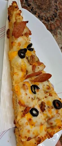 نمایش موقعیت منشعارشون اینه که هر برش پیتزات و از یه مدل انتخاب کن و هر پیتزاشون در واقع یک برش هست ! خیلی به اندازش نمیشه ایراد گرفت اما طعم سازی قوی نداره مخصوصا چهار پنیر چوریتسوش که واقعا مزه هیچی میداد ! نه چوریتسوش مزه داشت نه جز پنیر پیتزاش طعم پنیر خاصی میداد ! از چهار مدل پیتزای رست بیف چیکن آلفردو چهارپنیر چوریتسو و کراکف بهترینش رست بیف بود که البته تا حدی بوی چربی گوشت هم داره . تنها چیزیش که واقعا عالیه مرغ جولینش هست. تحویل در محلشون هم گرم و مناسب بود . عکسی که داخل بشقابه چهار پنیر چوریتسو و عکس دیگه رست بیف هست .