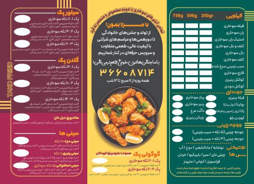 به شدت پیشنهاد میدم امتحانش کنید. به خصوص فیله پنیری و سیب زمینی شون رو. ادویه شون حرف نداره. بال و کتف رو هم از دست ندید.