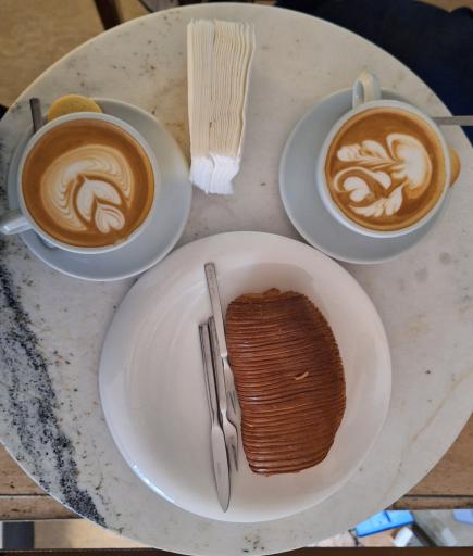 فضا و طراحی: ۳ از ۵ فضای متوسطی از جهت ظرفیت. طبقه بالا در حد دو میز بسیار کوچیک با ظرفیت ۶ نفر. موسیقی بسیار بلند و بی روح. صندلی ها نه چندان راحت و شیک. خدمات و قیمت: ۳ از ۵ لاته و پن شکلاتی سفارش دادیم. کمی دیر حاضر شد و البته سرد. لاته خوشمزه بود. قیمت ها بسیار گران. در حد کیفیت و فضای کافه این قیمت نبود. رفتار کارکنان: ۴ از ۵ چیز بدی ندیدیم. معمولی بود. البته شاید انتظار بیشتری داشتیم. تجربه ای نبود که تکرار کنیم.