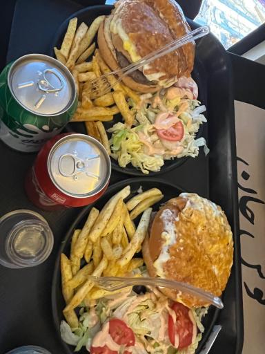 ما چیز برگر داشتیم.خیلی خوشمزه بود.سیبزمینی و سالادشم عالی بود.فقط سس سیرشو دوس نداشتم کم مزه بود.دست ساز بود و انتظار بیشتری میرفت