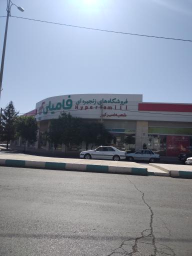 نمایی کلی از فروشگاه هایپرفامیلی امیرکبیر استان کرمان نبش 4راه امیر کبیر و بلوار امام حسن مجتبی علیه السلام ساعات کاری فروشگاه از ساعت 8 صبح تا 22به صورت یکسره فروشگاه باز می باشد