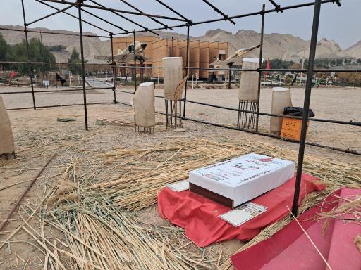 مزار این شهید فعلا دورتا دورش خالیه لبه های خاکریز داربست های محافظ با پرچم ها و تصاویر شهدا هست که آدم رو یاد شلمچه میاندازه فعلا اونجا غربت عجیبی حاکمه شهید نونزده ساله♥️