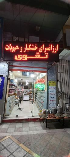 نمایش موقعیت منارزانسرای خشکبار و حبوبات تقوی (آجیلفروشی و خشکبارفروشی) در محله کیومرثیه شهریار و خیابان مصطفی خمینی واقع شده است. این فروشگاه یکی از شش فروشگاه آجیل و خشکبار در محله کیومرثیه شهریار میباشد و از نظر موقعیت جغرافیایی در نزدیکی مراکز مهمی مانند خانه بازی فسقلی ها و آریا دما و همچنین کانون زبان شهریار، ساندویچی صبا شهریار، امامزاده هادی (ع)، کافی نت وحید و مسجد ولیعصر (عج) کرشته شهریار قرار گرفته است.