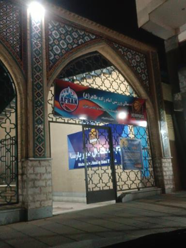 سالن ورزشی امامزاده طاهر (ع) (سالن و مجموعه ورزشی) در کرج و خیابان ساحل واقع شده است. و از نظر موقعیت جغرافیایی در نزدیکی آلارم اسکیپ و همچنین امامزاده طاهر (ع)، آرامستان امامزاده طاهر، پارک امامزاده طاهر، مزار مرحوم آغاسی و آرامگاه فرحدخت عباس طاقانی (پوران) قرار گرفته است.