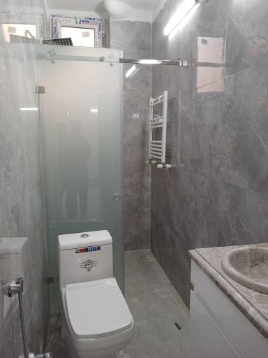جداکننده فضای حمام وسرویس بوسیله شیشه سکوریت نشکن (مات و شفاف ) بسیار زیبا وشیک و با صرفه بجای بنایی با آجر و مصالح ساختمانی
