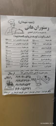 نمایش موقعیت منکترینگ هانی (کترینگ و تهیه غذا) در محله دکتر هوشیار تهران و خیابان شهیدان واقع شده است. این مکان یکی از هفت کترینگ و آشپزخانه در محله دکتر هوشیار تهران میباشد و از نظر موقعیت جغرافیایی در نزدیکی مراکز مهمی مانند بیمارستان آزادی و مرکز خرید کوثر و همچنین پیتزا و ساندویچ سعید، روغن گیری کنجد و بادام زمینی، بیمارستان روانپزشکی میمنت، مطب دکتر نجیبی و نان و شیرینی بلوط قرار گرفته است. با توجه به نزدیکی این مکان به ایستگاه مترو دکتر حبیب اله، برای دسترسی راحتتر و کمک به داشتن هوایی پاکتر، میتوانید از وسایل حمل و نقل عمومی برای مراجعه به آن استفاده کنید.