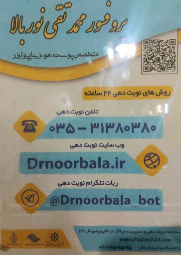 مطب دکتر محمدتقی نوربالا متخصص پوست و مو نبش بن بست هشتم کوچه برخوردار
