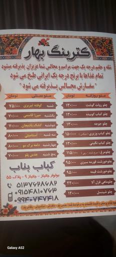 کترینگ بهار (کترینگ و تهیه غذا) در محله جانباز مشهد و بلوار جانباز، شهید مجیدی واقع شده است. این مکان یکی از چهار کترینگ و آشپزخانه در محله جانباز مشهد میباشد و از نظر موقعیت جغرافیایی در نزدیکی آکادمی کشتی جواد اسماعیل پور، مسجد ابوالفضلی، چاپ طلوع فجر ، نانوایی سنگک و خانه کالباس قرار گرفته است.