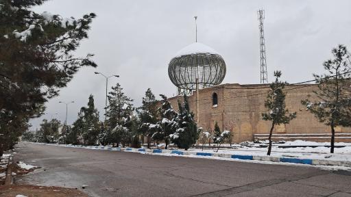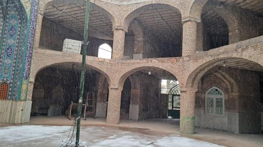 نمایی ازداخلی وبیرونی مسجد در روز برفی.