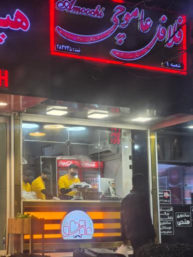 عاموچی فلافل (فست فود) در اصفهان و خیابان غدیر واقع شده است. و از نظر موقعیت جغرافیایی در نزدیکی توتوپران و همچنین شیرینی سرای ماه نوش، پاچینی دربار، نان فانتزی فدک، پیتزا پیتزا و مجتمع تجاری اداری مهتاب قرار گرفته است.
