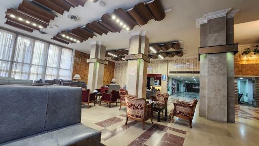 با سلام چهار روز اقامت داشتم، هتل نیاز به بازسازی داره(موکت ها کثیف و مندرس-سرویس بهداشتی تمیز بود اما به شدت نیاز به مرمت داره،لوازم اتاق کهنه و مبلمان مندرس و تمیز نیست ، کتری برقی/چای ساز داخل اتاق ها موجود نیست،درب ها و کمدها کثیف و نیاز به تعمیر دارند), صبحانه سال در نوع صبحانه گرم و صبحانه سرد،به نظر میرسه با بازسازی کامل به شدت پتانسیل تبدیل شدن به یک هتل چهار ستاره را دارد. در کل با اغماض در شرایط فعلی و با احترام به پرسنل محترم و زحماتشان، دو ستاره به این هتل داد. پاینده باشید