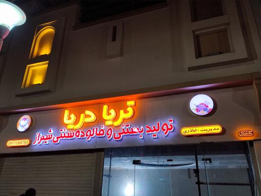 تریا دریا (بستنیفروشی و آبمیوهفروشی) در محله پشت شهر بندرعباس و بلوار آیتالله طالقانی واقع شده است. این مکان یکی از پنج آبمیوه و بستنی در محله پشت شهر بندرعباس میباشد و از نظر موقعیت جغرافیایی در نزدیکی مراکز مهمی مانند بیمارستان صاحب الزمان و بازار جدید ماهی فروشان بندرعباس و همچنین رستوران دریایی علوش، فروشگاه رفاه(کرانه)، قنادی نگین کیک، بانک کشاورزی و کلبه ماهی ومیگو خوران جنوب قرار گرفته است. همچنین با توجه به نظراتی که کاربران در اپلیکیشن نشان به این مکان دادهاند میتوان گفت این مکان یکی از بستنیفروشیها و آبمیوهفروشیهای خوب این منطقه میباشد.