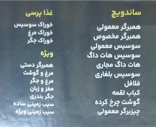 نمایش موقعیت منبسیار عالی👍 با کیفیت و خوشمزه و بیاد ماندنی که سالهای سال مشتری این مکان هستم حتما به دیگر دوستان و همشهریان عزیز پیشنهاد میکنم که به این مکان بیان👍 مطمئن باشید که پشیمون نخواهید شد چون خودم همراه باخوانواده 👨👩👧👦و دوستان برای لذت بردن از فست فود🍔🍟🌭🌮 از این مکان صمیمانه استقبال👍 میکنیم شما 👆هم امتحان کنید😋