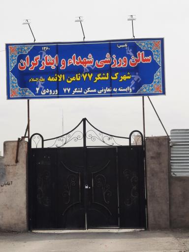 سالن ورزشی شهدا و ایثارگران (سالن و مجموعه ورزشی) در محله شهرک لشکر مشهد و خیابان فاطمیه 10 - هاشمی مهنه 13 واقع شده است. این مجتمع یکی از نوزده مجموعه ورزشی در محله شهرک لشکر مشهد میباشد و از نظر موقعیت جغرافیایی در نزدیکی پینت بال مستر، دبستان دخترانه پنجم مهر، زمین فوتبال چمن مصنوعی، کافه تهرون و شرکت ایمن سازان الماس هخامنش قرار گرفته است.