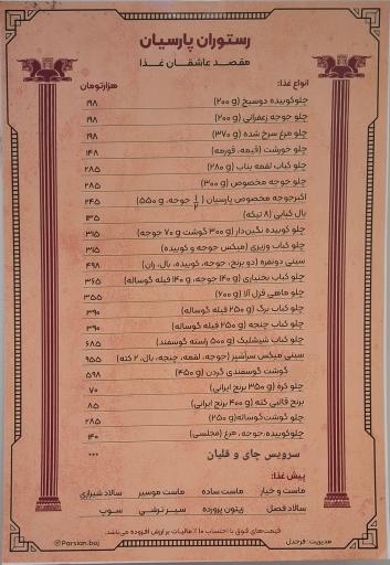 رستوران پارسیان در محله فردوسی بجنورد و خیابان کنارگذر مدرس واقع شده است. این کافیشاپ یکی از چهار کافه رستوران در محله فردوسی بجنورد میباشد و از نظر موقعیت جغرافیایی در نزدیکی بازارچه اتحاد و همچنین رستوران مرکزی برادران یزدانی، گلشن آنلاین، پارک بانوان آفرینش، سینما گلشن و مجتمع فرهنگی گلشن قرار گرفته است. همچنین با توجه به نظراتی که کاربران در اپلیکیشن نشان به این مکان دادهاند میتوان گفت این کافیشاپ یکی از کافیشاپهای خوب این منطقه میباشد.