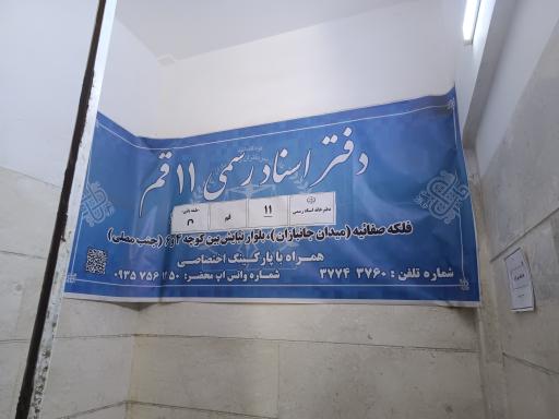 دفتر اسناد رسمی ۱۱ در محله مصلاء قم و بلوار نیایش واقع شده است. این دفتر یکی از دو دفتر اسناد رسمی در محله مصلاء قم میباشد و از نظر موقعیت جغرافیایی در نزدیکی مراکز مهمی مانند شهربازی رویاتو، خانه موزه شهیدان زین الدین و پاساژ حریر و همچنین فلافل پنگوئن، مصلی بزرگ قدس قم، بوستان نجمه، ایستگاه اتوبوس میدان جانبازان و دندانپزشکی سینا قرار گرفته است. همچنین با توجه به نظراتی که کاربران در اپلیکیشن نشان به این مکان دادهاند میتوان گفت این دفتر یکی از دفاتر اسناد رسمی خوب این منطقه میباشد. با توجه به نزدیکی این دفتر به ایستگاه مترو پل عابر پیاده بر روی رودخانه (ریل راه آهن قدیمی)، برای دسترسی راحتتر و کمک به داشتن هوایی پاکتر، میتوانید از وسایل حمل و نقل عمومی برای مراجعه به آن استفاده کنید.