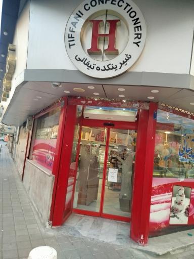شیرینی فروشی تیفانی در محله توحید تهران و خیابان بهبودی واقع شده است. این قنادی یکی از هفت شیرینی فروشی در محله توحید تهران میباشد و از نظر موقعیت جغرافیایی در نزدیکی بازار گل شادمان و همچنین پیتزا روز، دکتر زریان جعفری، رستوران زاگرس، شرکت پردازش موتور و آسایشگاه سالمندان توحید قرار گرفته است.