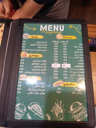 فست فود رایمون در محله الهیه مشهد و خیابان محمدیه 10 - سجادیه 23 واقع شده است. این مکان یکی از چهل فست فود در محله الهیه مشهد میباشد و از نظر موقعیت جغرافیایی در نزدیکی مجتمع تجاری خلیج فارس و همچنین بانک قرض الحسنه مهر ایران، دبیرستان دوره اول حسینی قفلی، کانون کارگزاری املاک الهیه، پوشاک ایرانیان و کافه فست فود باران قرار گرفته است. همچنین با توجه به نظراتی که کاربران در اپلیکیشن نشان به این مکان دادهاند میتوان گفت این مکان یکی از فست فودهای خوب این منطقه میباشد.