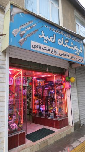 فروشگاه اسباب بازی و لوازم ماهیگیری و شکار امید (فروشگاه خرید لوازم شکار و ماهیگیری) در قوچان و خیابان مدرس شمالی ۲۰ - امام خمینی ۱۵ واقع شده است. و از نظر موقعیت جغرافیایی در نزدیکی مراکز مهمی مانند رودخانه اترک و مجتمع تجاری ماهان و همچنین برنج و حبوبات دریانوش، فروشگاه اسباب بازی شایان، دوچرخه و موتورسیکلت هرکولس، خیاطی یلدا و کارواش مجتبی قرار گرفته است.