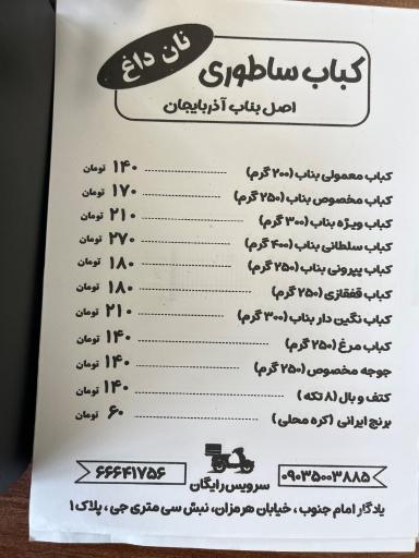 کباب ساطوری اصل آذربایجان (کباب و حلیمفروشی) در محله امام زاده عبدالله تهران و بزرگراه یادگار امام، هرمزان واقع شده است. این کبابی یکی از شش کباب و حلیم در محله امام زاده عبدالله تهران میباشد و از نظر موقعیت جغرافیایی در نزدیکی موزه شهیدان اقبالی و همچنین رینگ و لاستیک سید مهدی، شیشه دودی میلاد، مسجد حضرت قمر بنی هاشم(ع)، فستفود جینو و کبابی گلها قرار گرفته است. همچنین با توجه به نظراتی که کاربران در اپلیکیشن نشان به این مکان دادهاند میتوان گفت این کبابی یکی از کبابیها و حلیمفروشیهای خوب این منطقه میباشد.