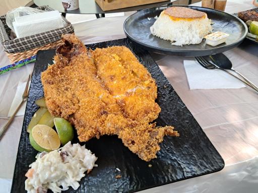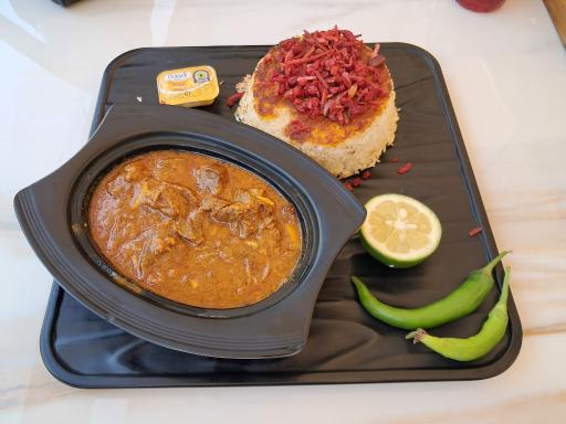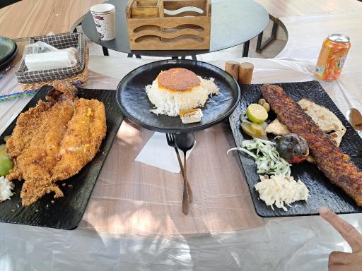 کباب تبریزی بسیار لذیذ و آبدار و خوش پخت، ماهی کاملا ترد و سوخاری شده و البته با پخت کانل و خوب مزه دار شده.. و قیمه نثار که میتونست بهتر باشه..