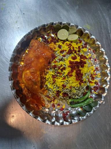 نمایش موقعیت منزرشک پلو با مرغ خیلی خوشمزه و بسته بندی مرتبی داشت